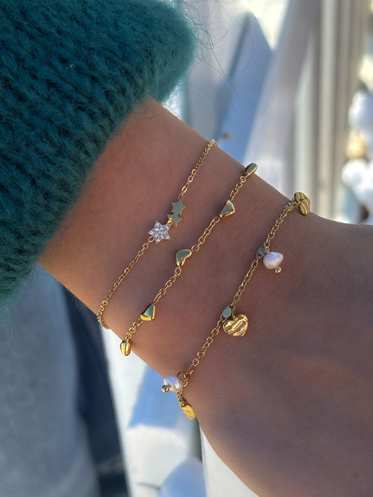 Des bracelets, colliers, bagues et boucles d'oreilles, délicatement dorés alliant modernité et élégance intemporelle.