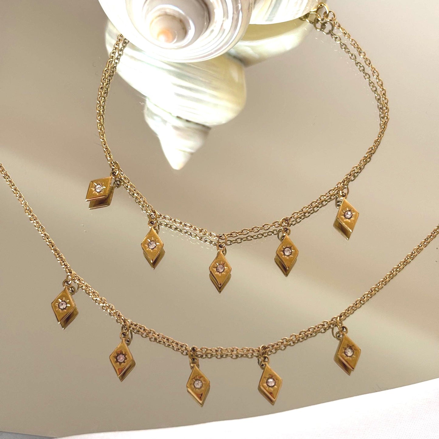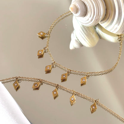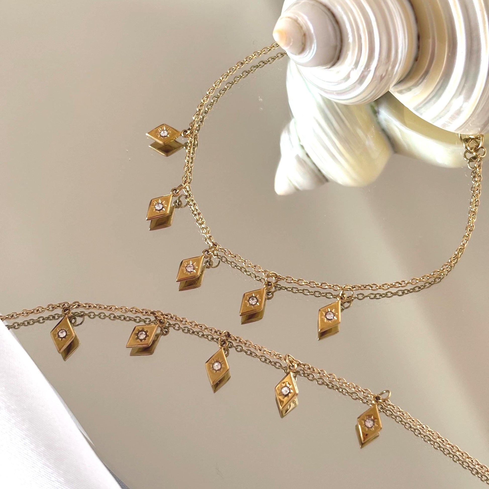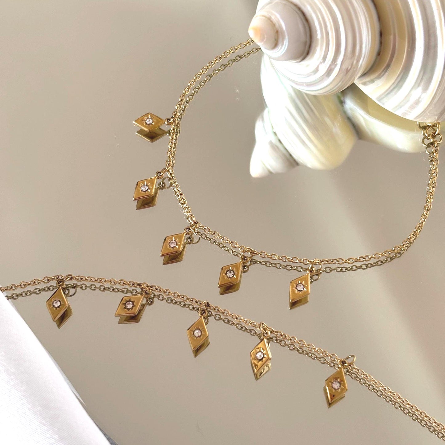 Bracelet chaîne en acier inoxydable composé de 5 losanges serties d'une étoile gravée et d'un oxyde de zirconium.