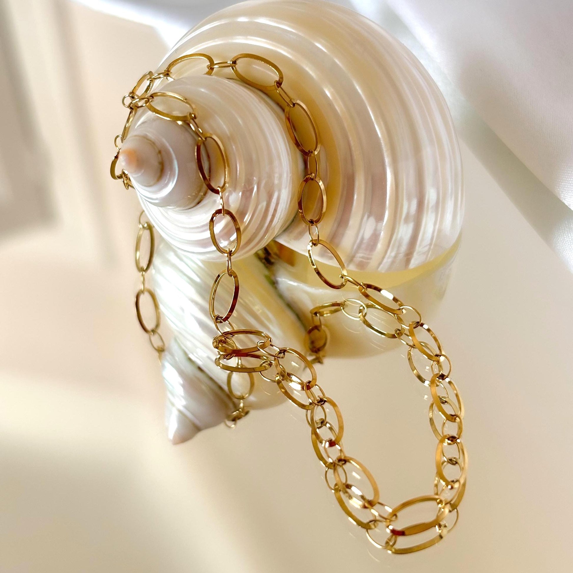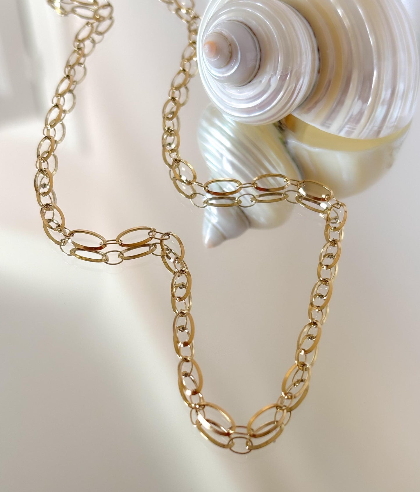 Collier sur chaîne en acier inoxydable composé de mailles ovales.