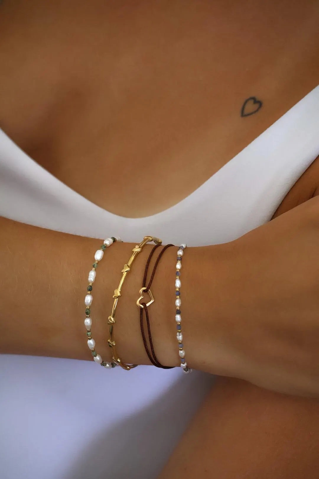 Bracelet sur câble orné de pierres naturelles et de perles d'eau douce.