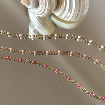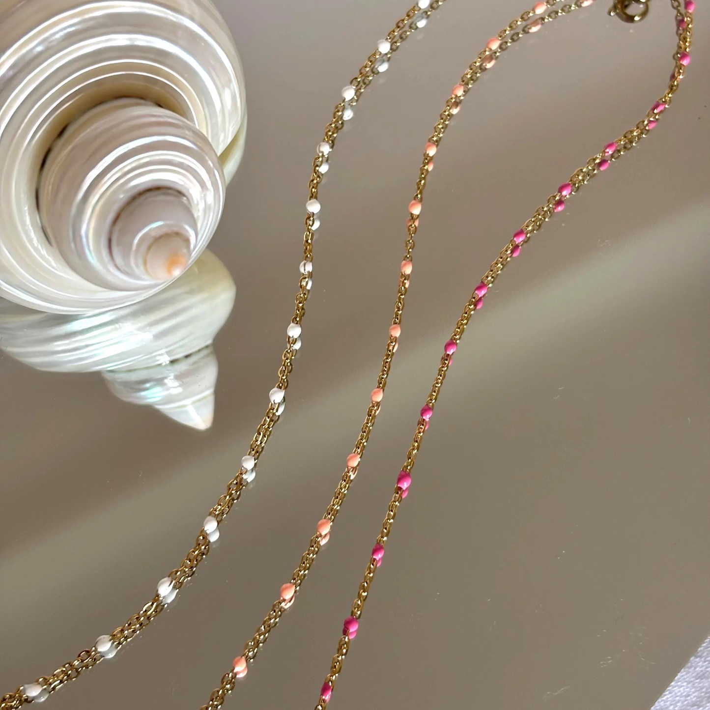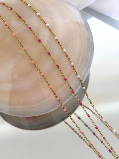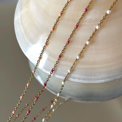 Une chaîne perlée fine en acier inoxydable. Mixer les couleurs pour créer un effet acidulé parfait pour l'été.