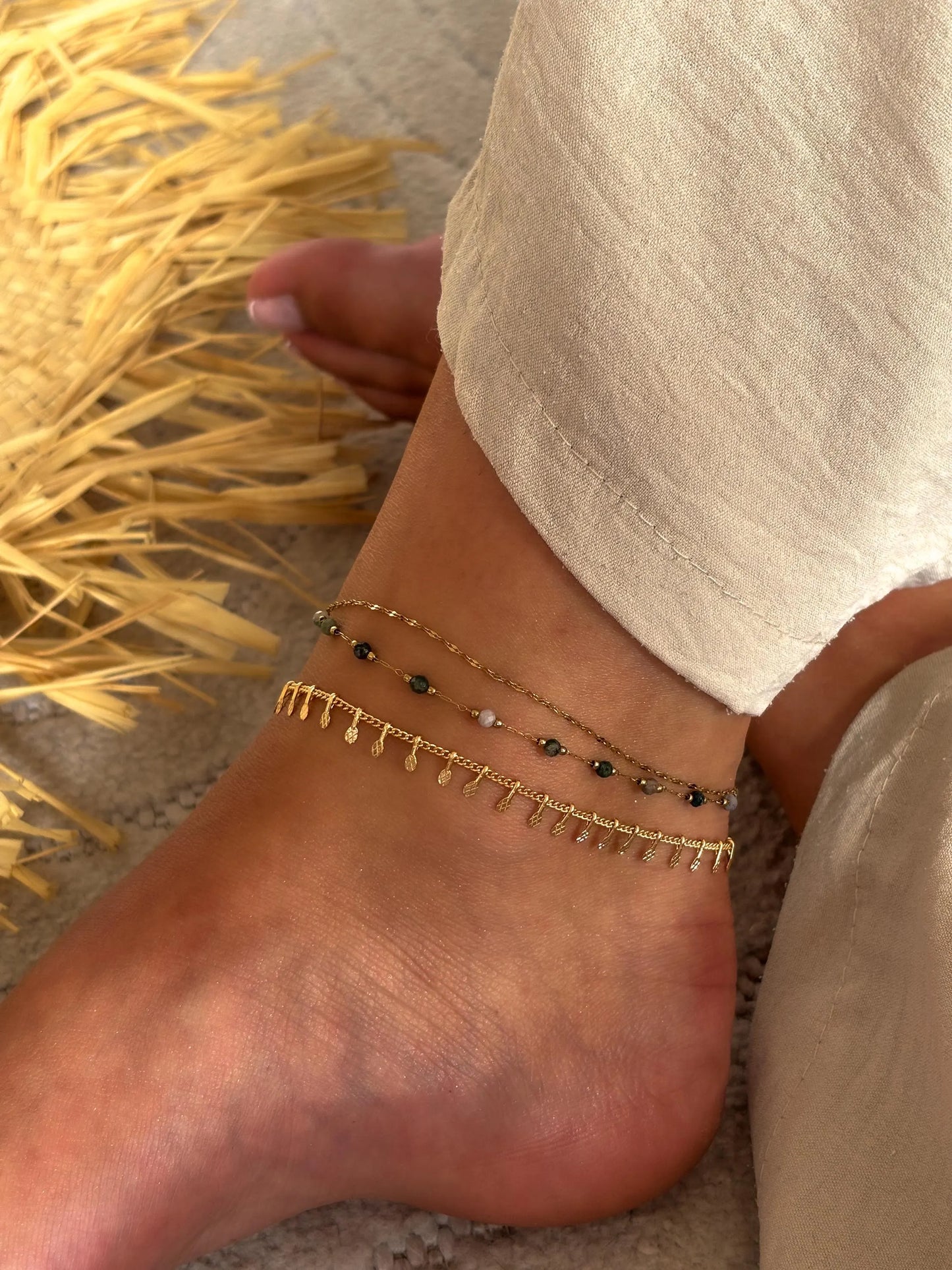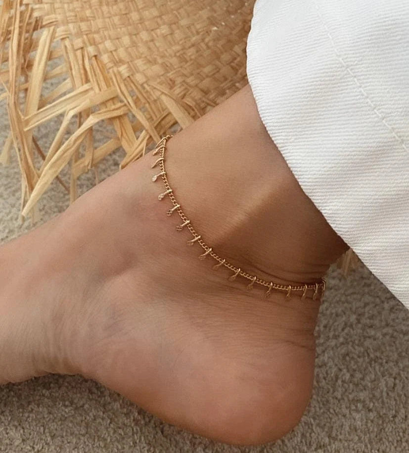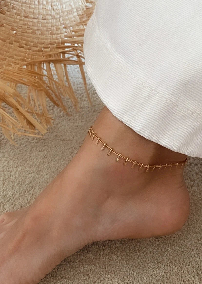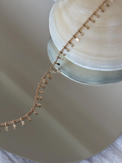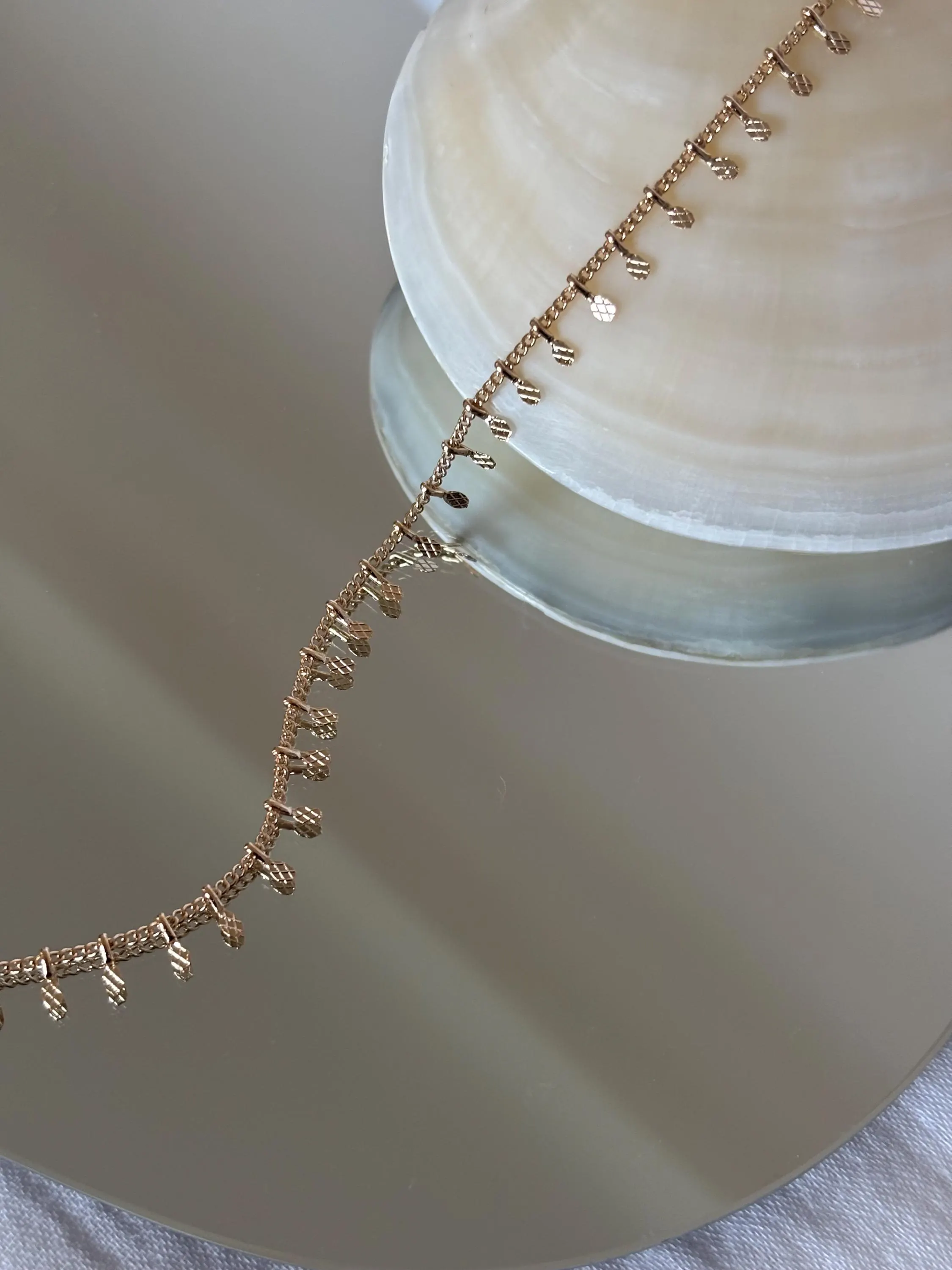 Une chaîne fine composée de pampilles en plaqué or 18 carats.