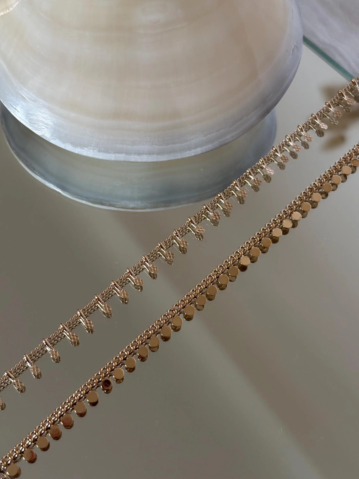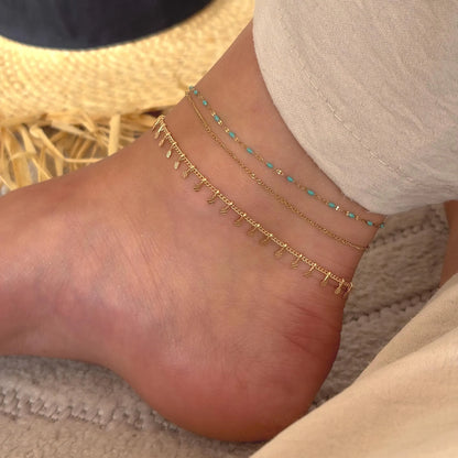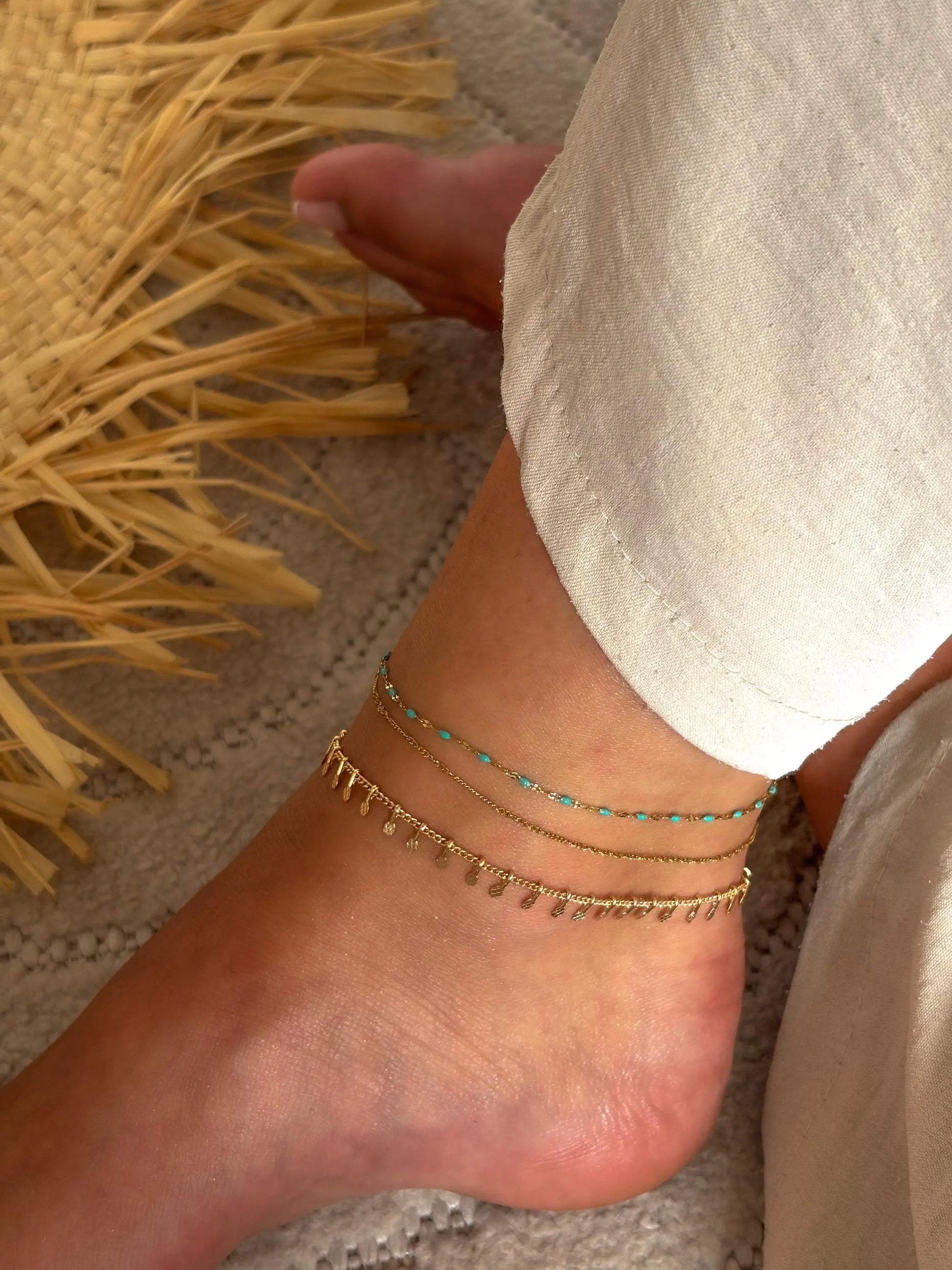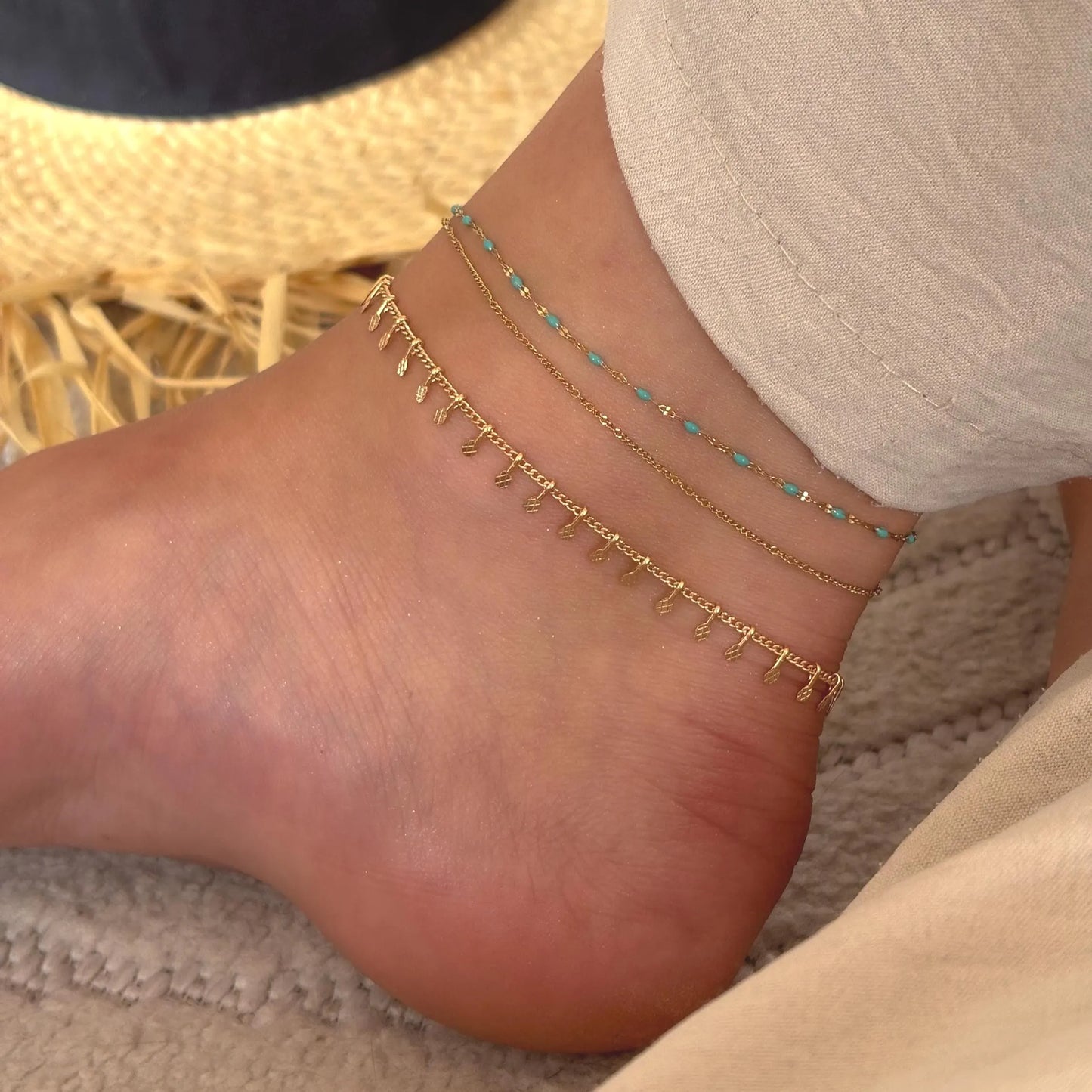 Une chaîne fine composée de pampilles en plaqué or 18 carats.