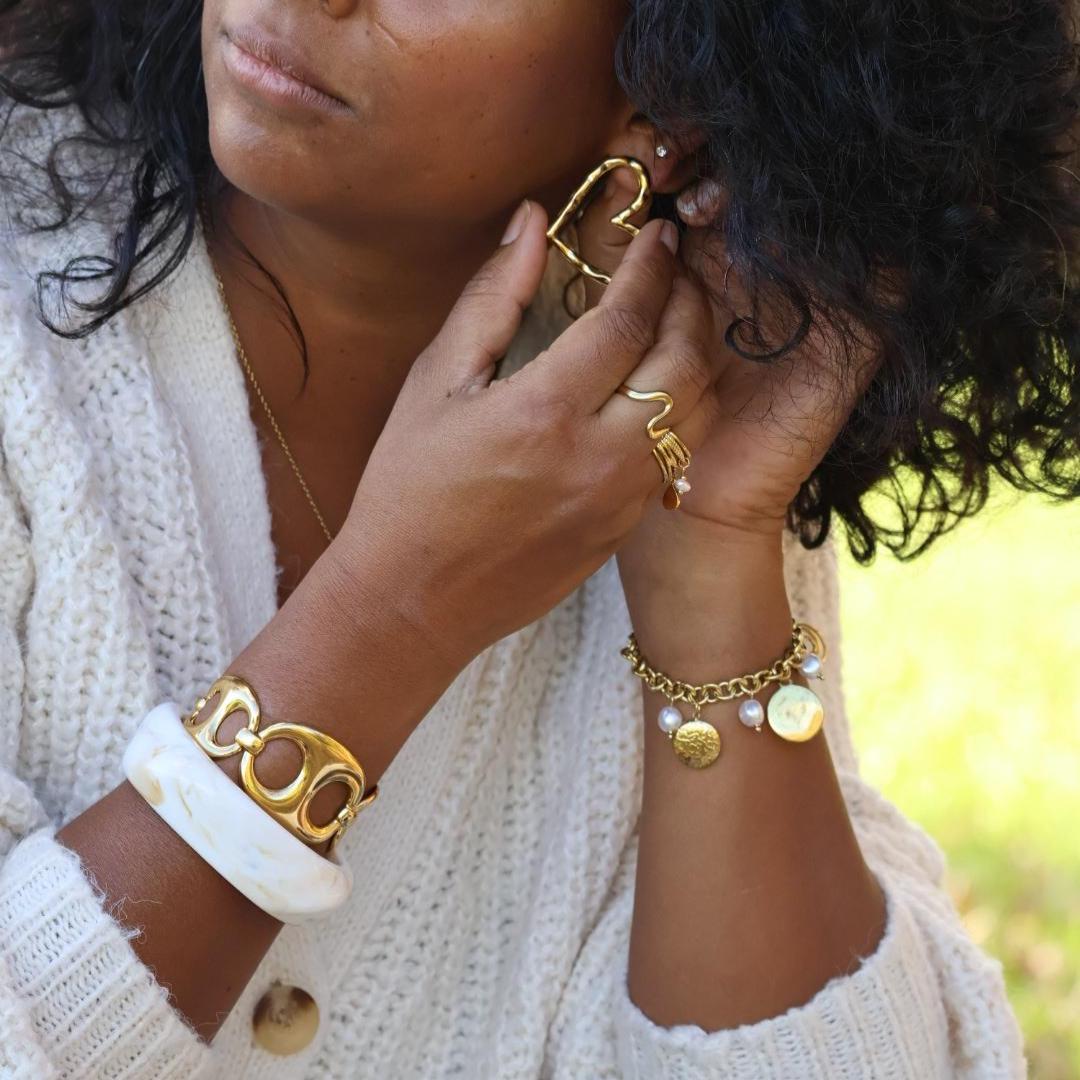 Sa brillance et sa forme fluide en font un bijou chic et intemporel, idéal pour un look féminin, tendance et raffiné.