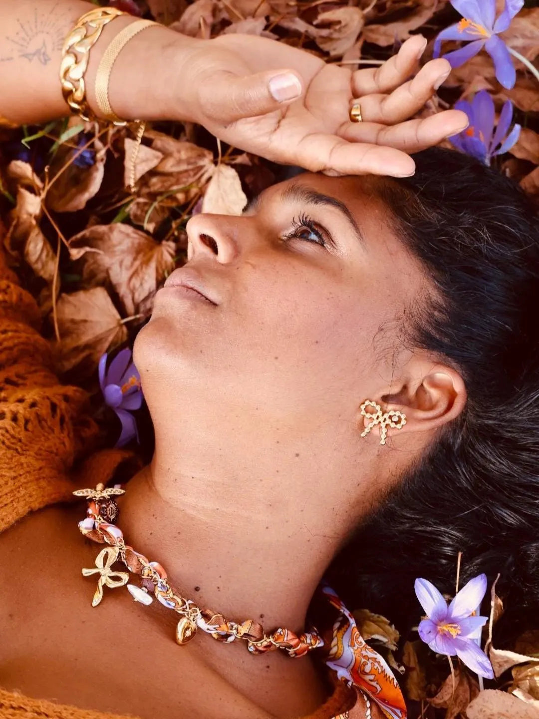Les boucles ELIA subliment la féminité avec leur nœud raffiné composé de petites perles dorées.