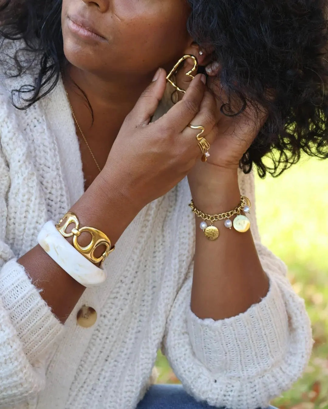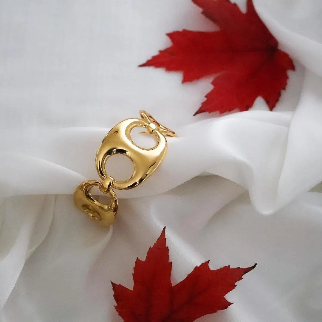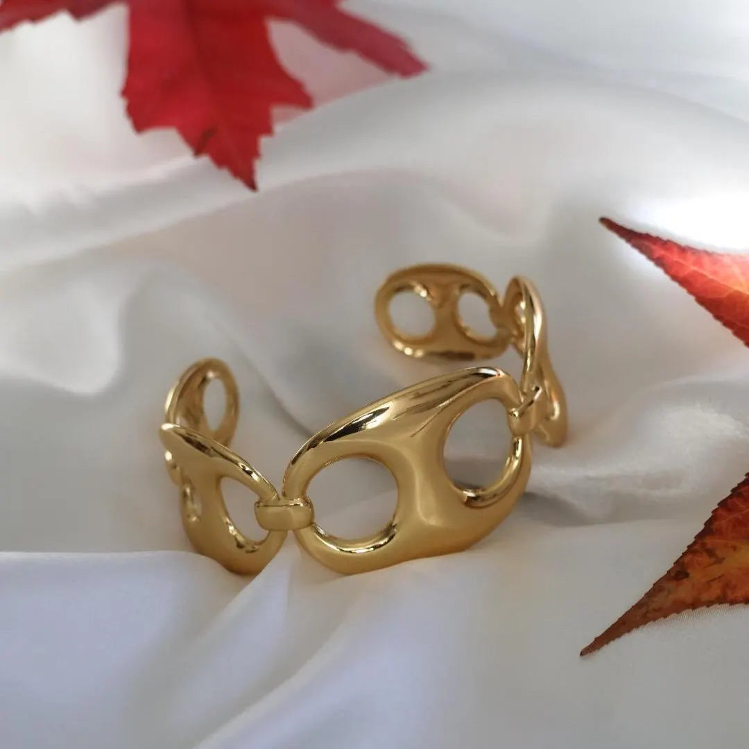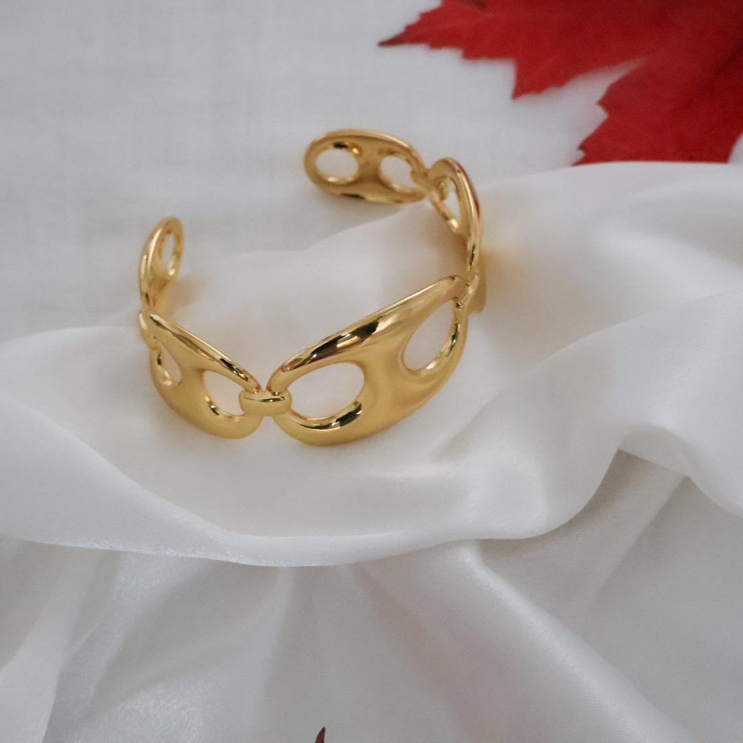 Le bracelet NAE séduit par ses maillons grains de café sculptés et son éclat doré raffiné.